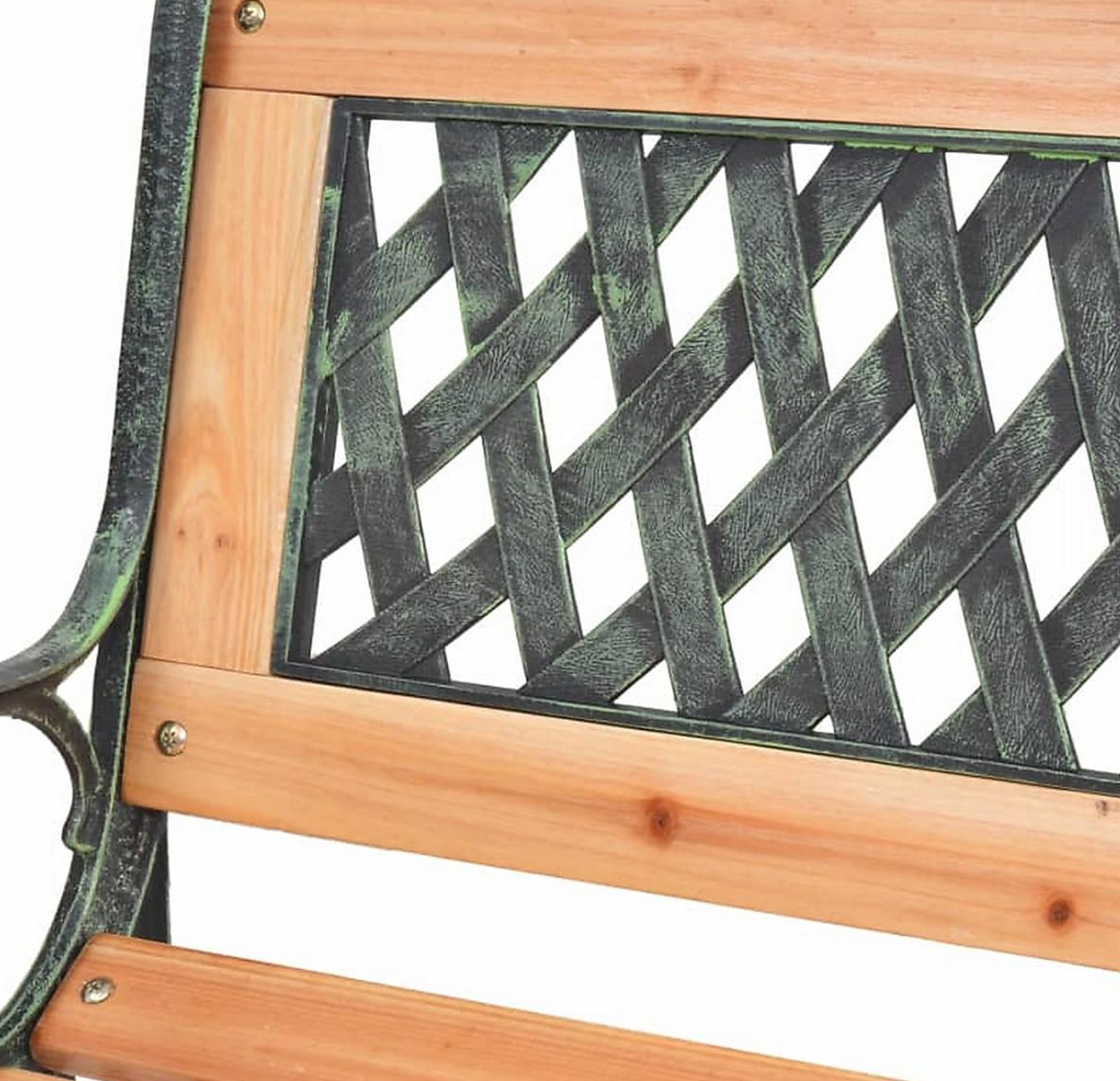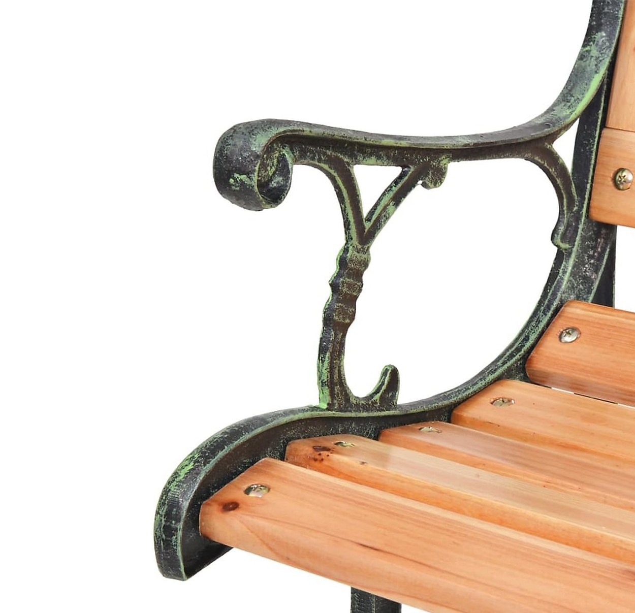 Масивна чугунена конструкция, допълнена от дървени ламели. товароносимост на пейката 150 kg.