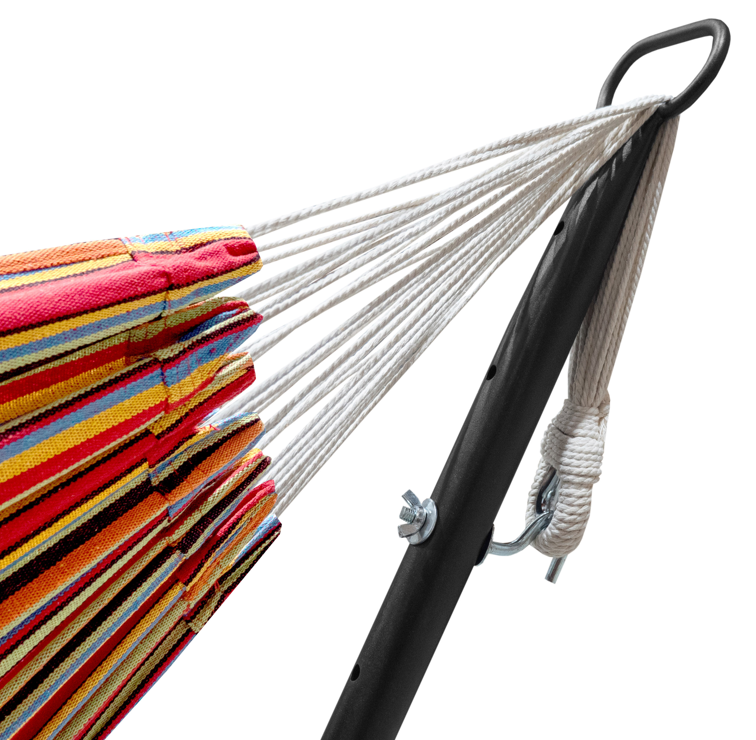 Хамакът се адаптира перфектно към естествената форма на тялото и предлага максимален комфорт при лежане. Изработен е от издръжлив и лесен за миене материал.