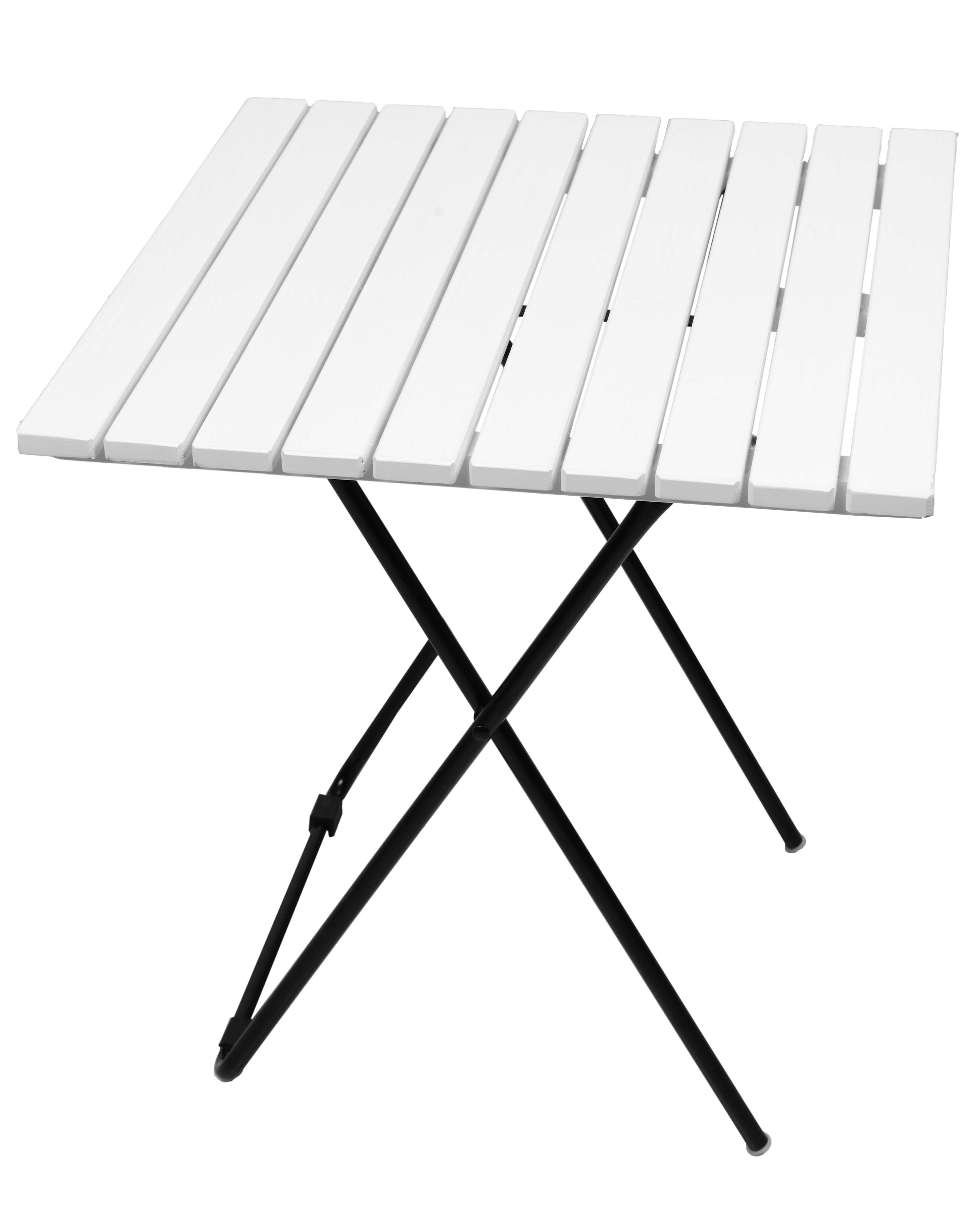 Сгъваема градинска маса с масивна метална рамка и дървен плот, идеална за градини, тераси, беседки, балкони, но също и за интериора на ресторанти и кафенета.