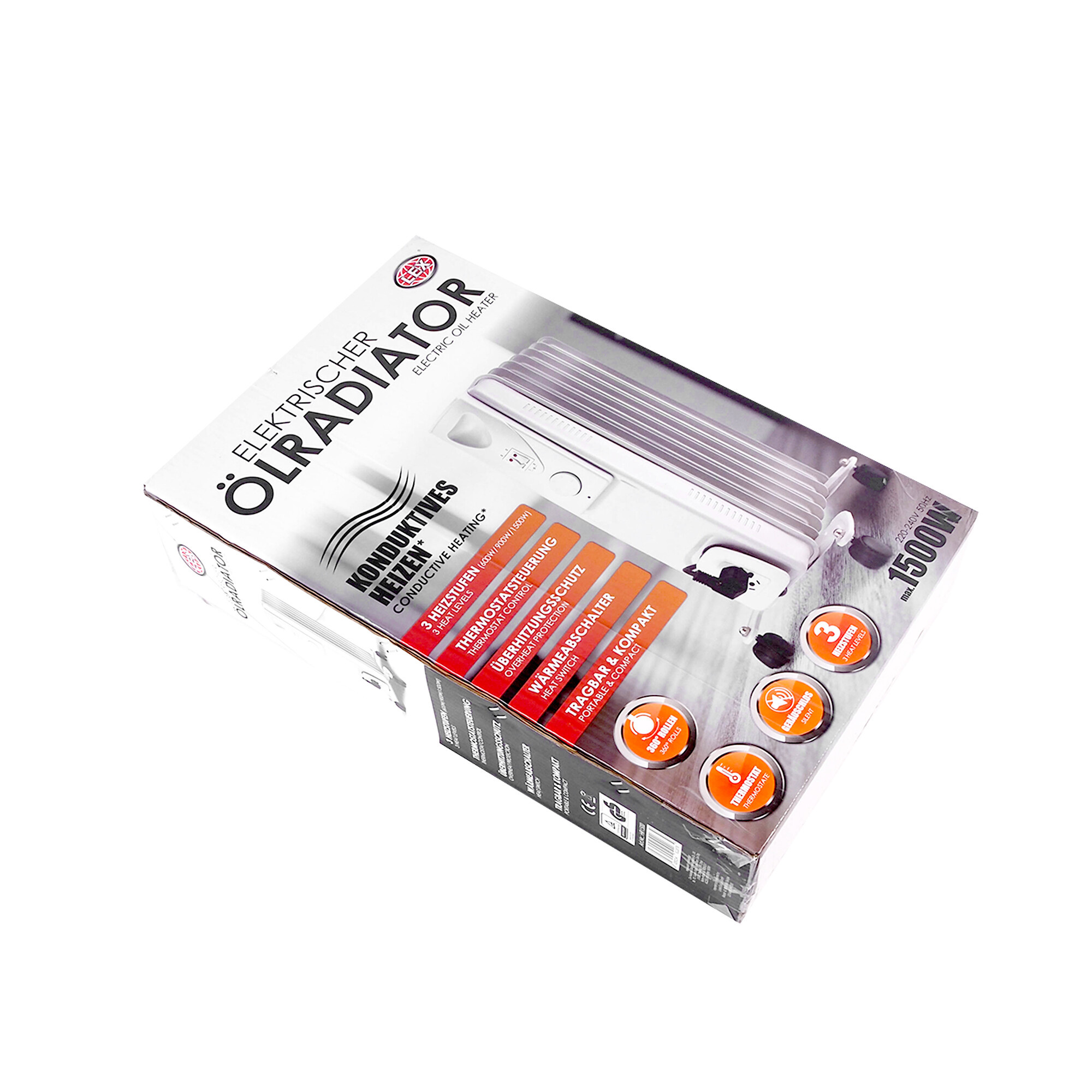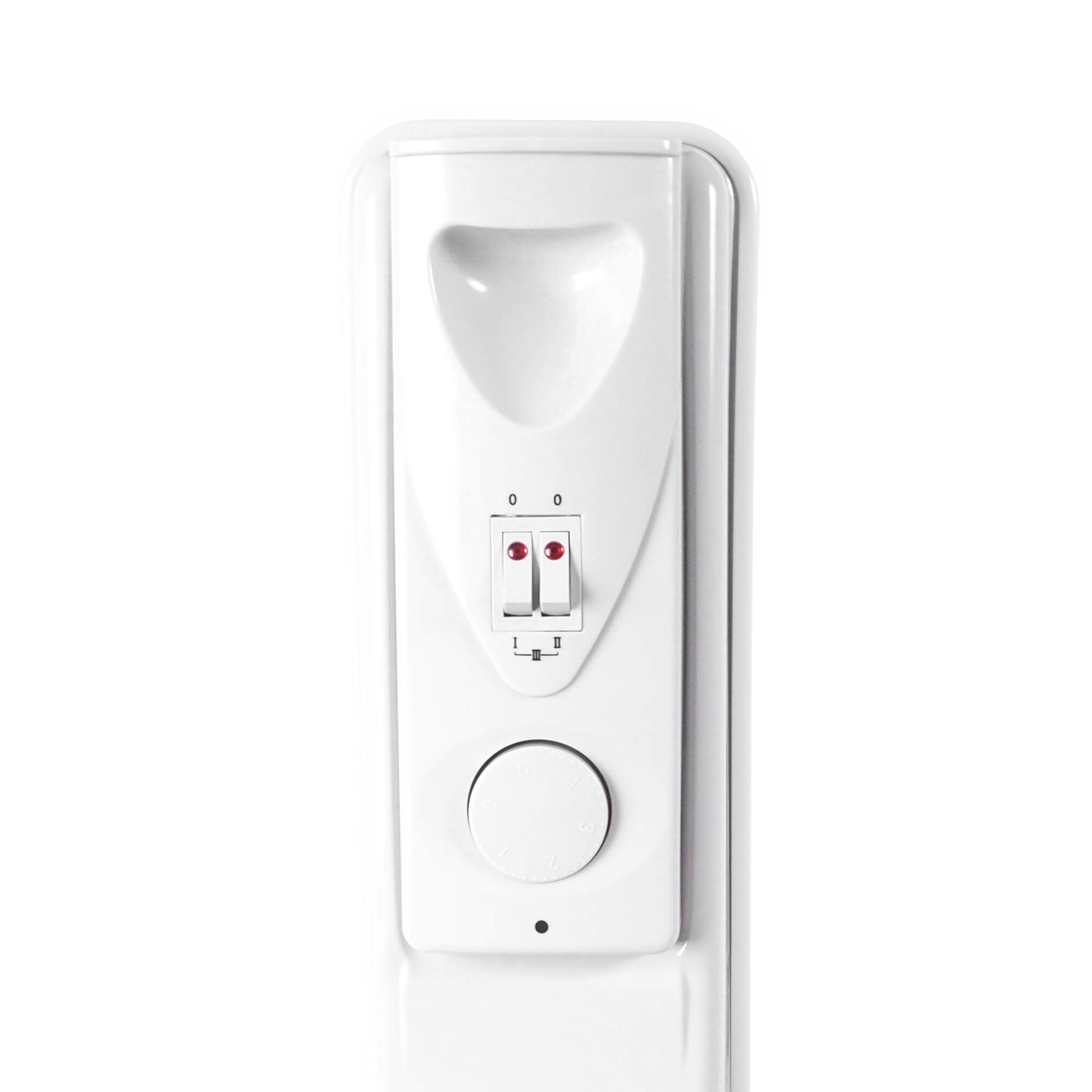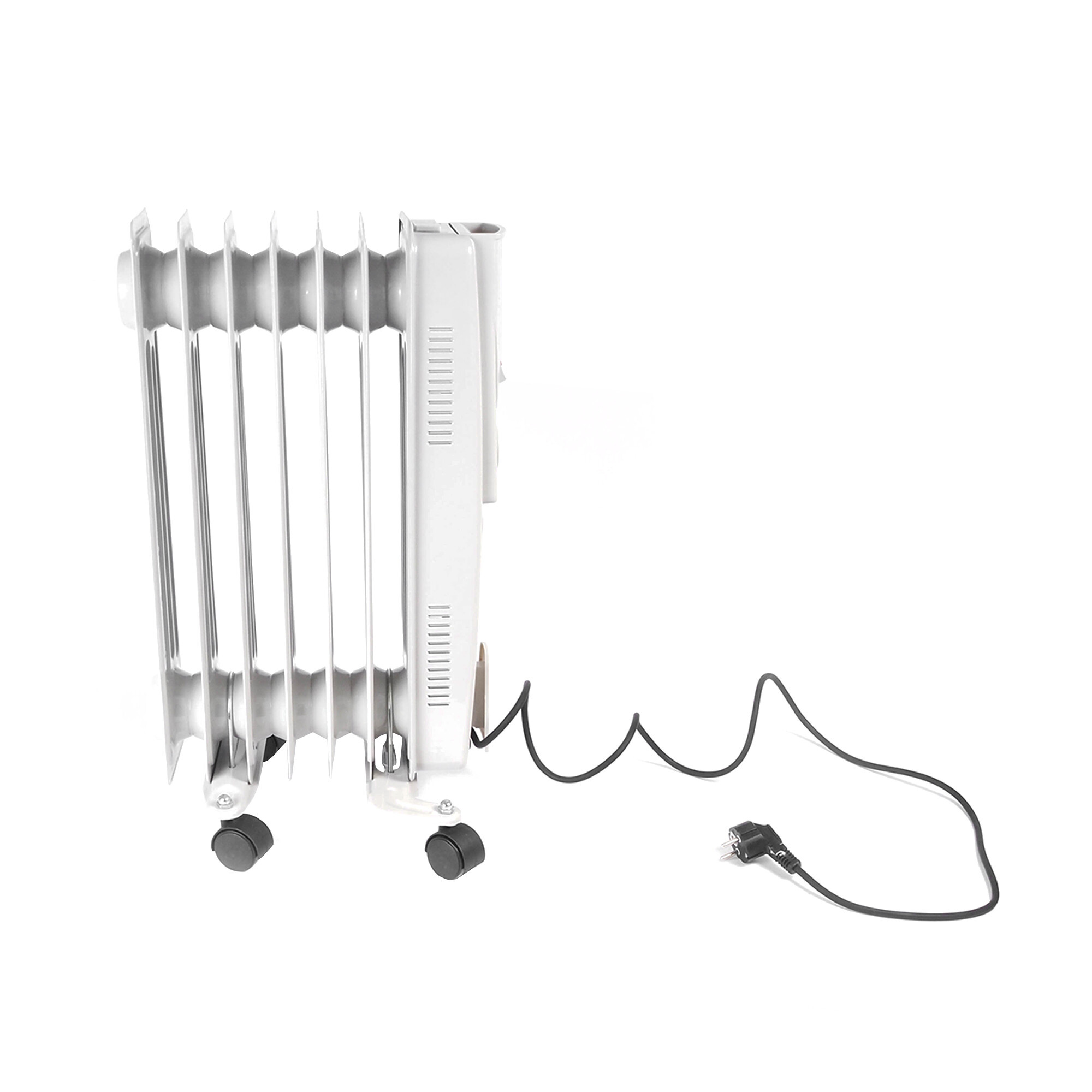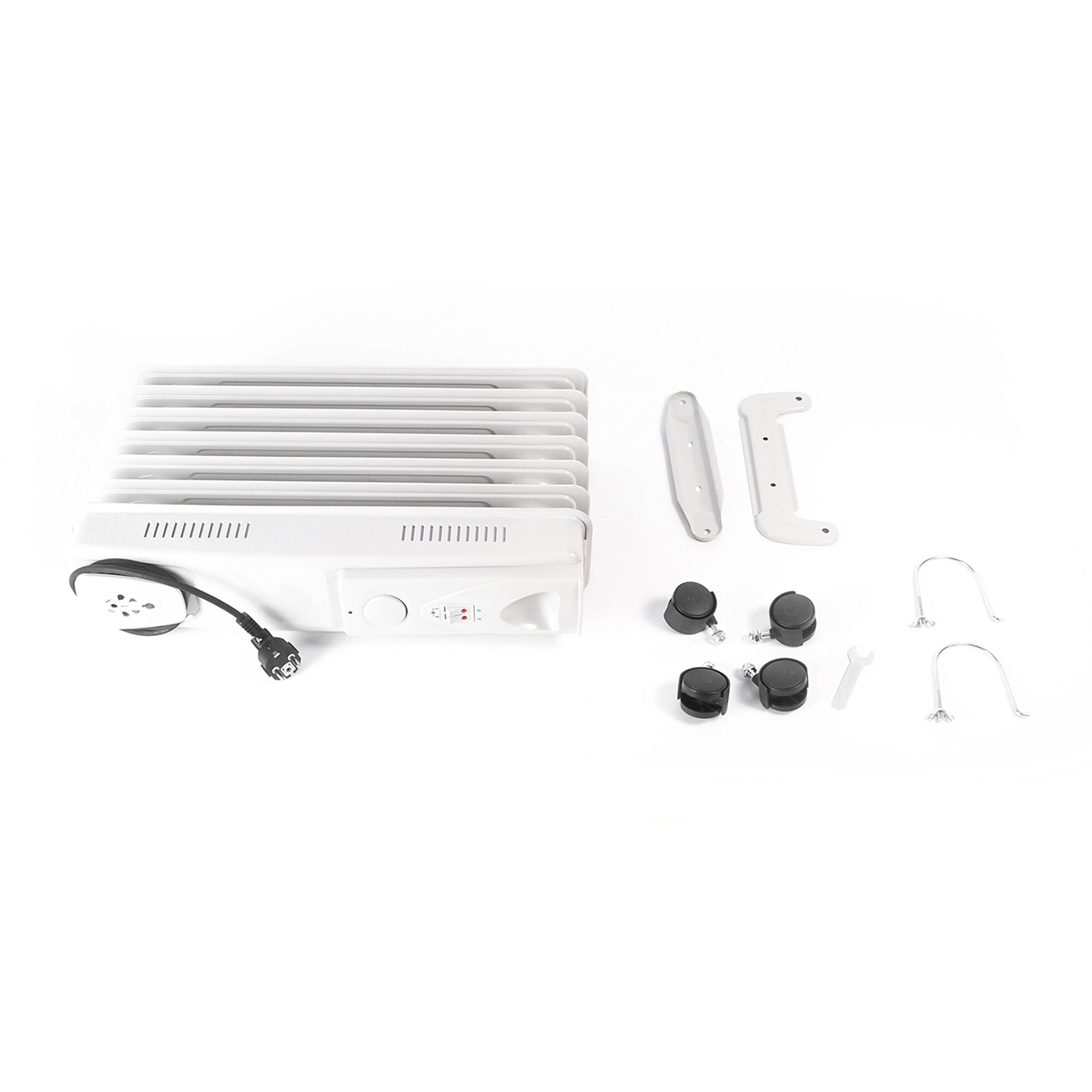 Масленият радиатор е проектиран с оглед на практичността. Разполага с навиване на кабела, което улеснява съхранението му и предотвратява заплитането на кабела. Люлеещият се превключвател и контролните светлини осигуряват лесно управление и преглед на текущото състояние на радиатора. Седем ламели с размери приблизително 120 x 500 мм осигуряват равномерно разпределение на топлината в цялата стая.