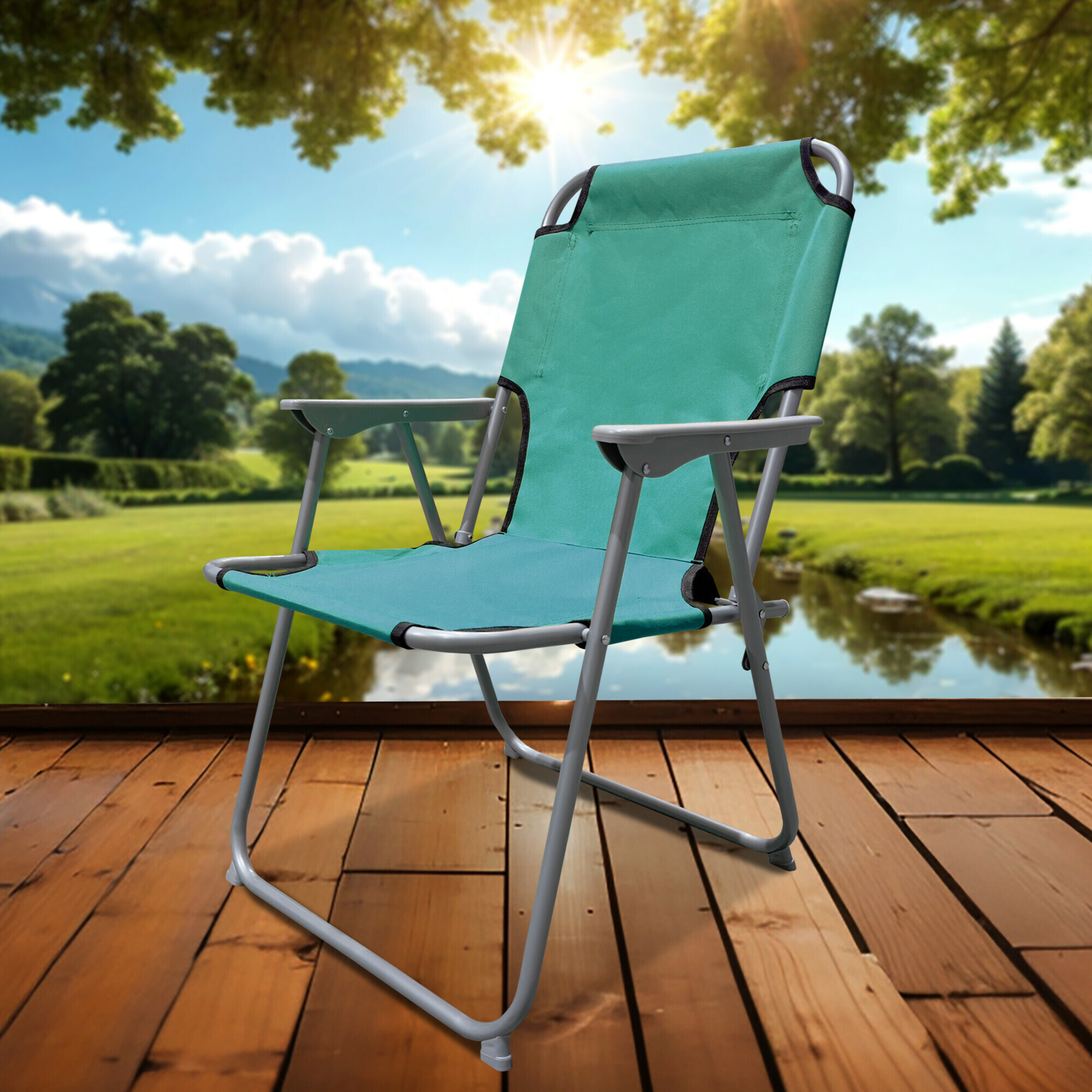 Сгъваем градински стол с удобни подлакътници, идеален за къмпингуване, но ще намери приложение и сред рибари, моделисти, хижари и хижари.