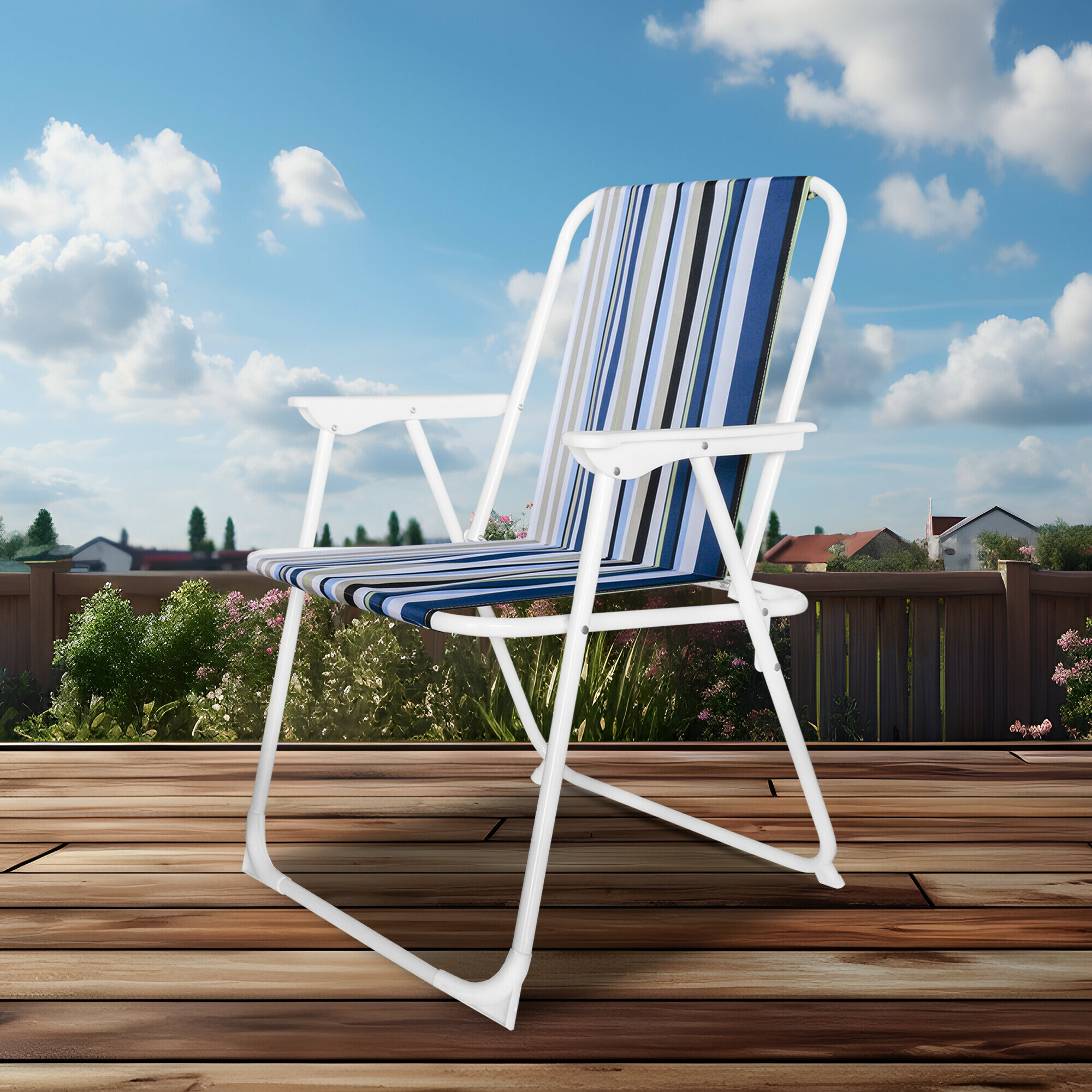Сгъваем градински стол с удобни подлакътници, идеален за къмпинг, но със сигурност ще намери приложение и сред рибари, моделисти, собственици на вили и къщи.