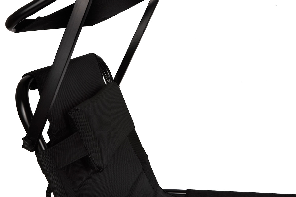 На шезлонга можете да почивате дори при силно слънце, тъй като вградената козирка ще защити лицето ви перфектно от яркото слънце.