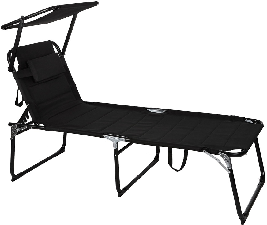 Сгъваем градински шезлонг с навес и подплънки и подсилена алуминиева конструкция, в модерен дизайн, подходящ за градини, къмпинг или плажове.