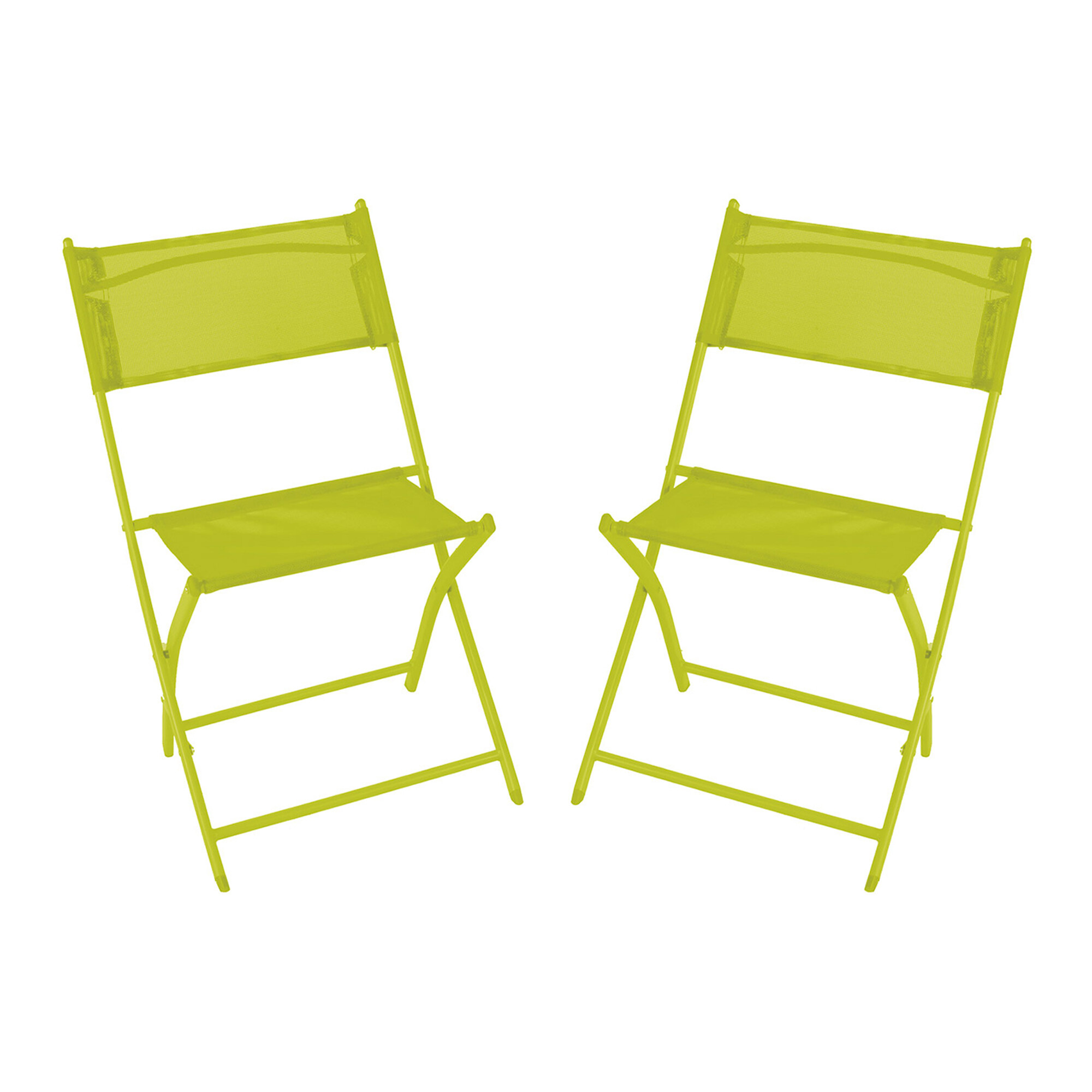 Комплектът включва 2 кресла и маса в зелен цвят.Градинската маса има метална рамка и сгъваем механизъм на конструкцията, благодарение на което можете много бързо да разгънете или сгънете масата.