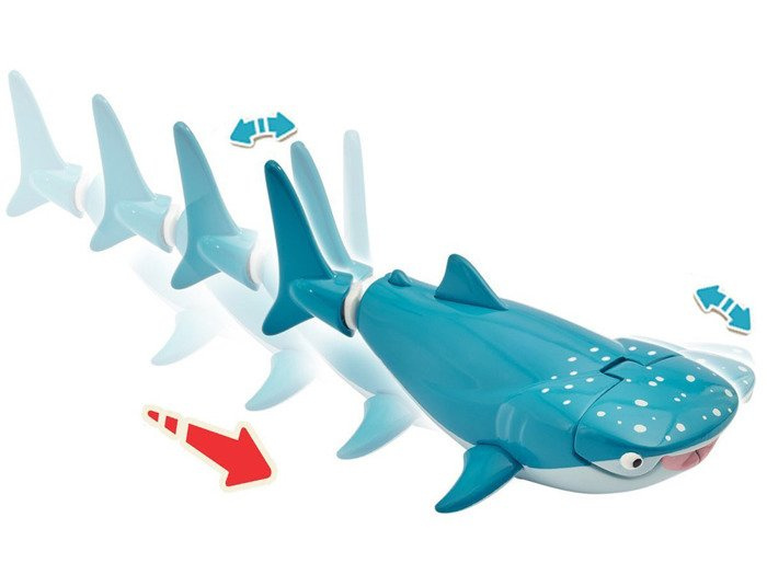 Това е изцяло пластмасова играчка, която маха с плавниците си, докато се движи.
