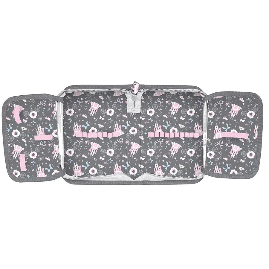 Едноетажен несесер с голямо пространство за писмени принадлежности и 2 капака, е идеален за първия клас на основното училище.