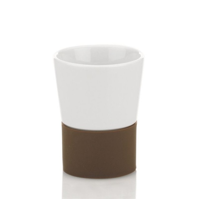 - материал: керамика/силикон- цвят: бял/кафяв- диаметър: 7,5 см- височина: 9,5 см- серия: Piano- марка: KELA