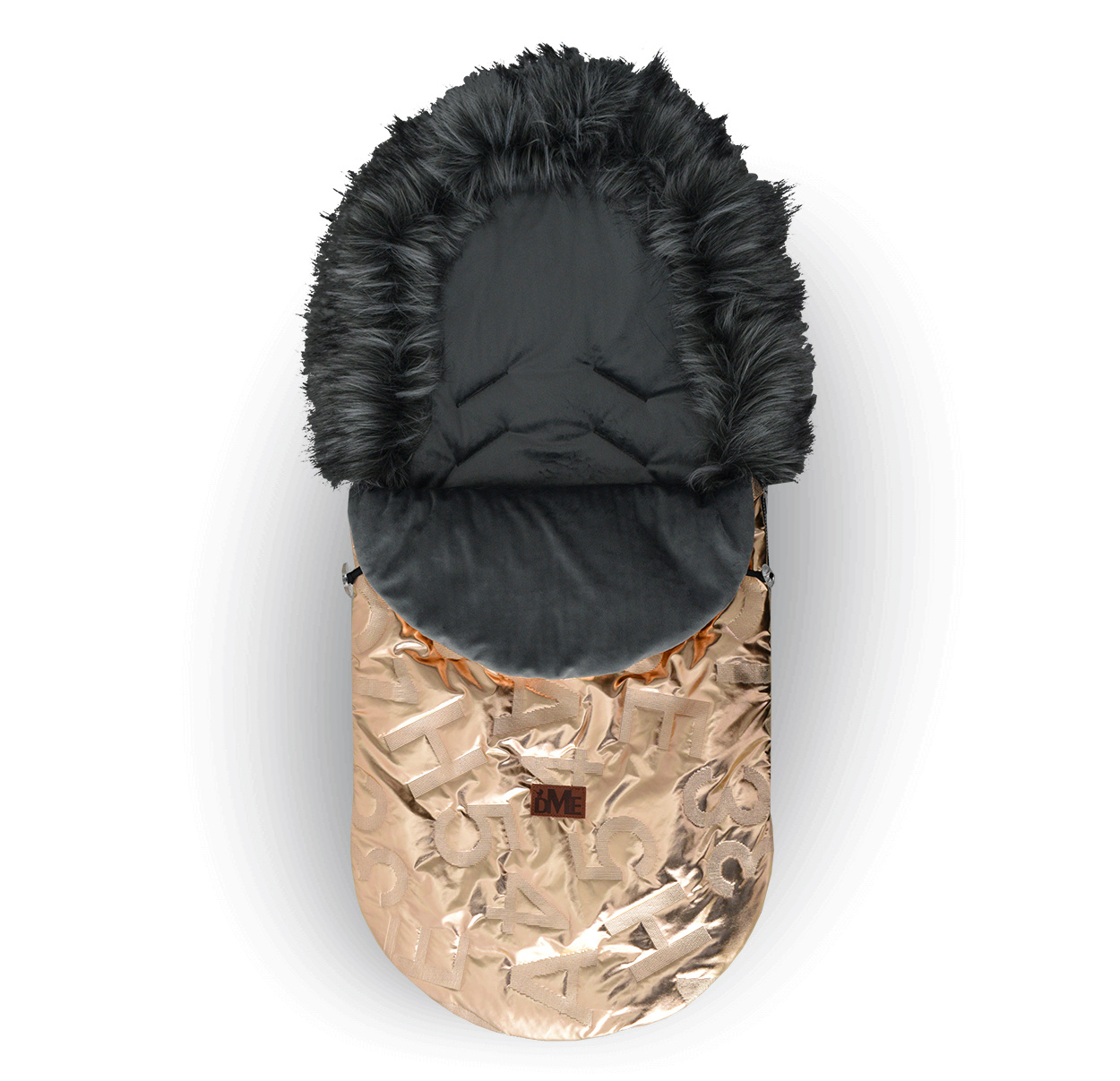 Бебешката кошара има отвор с цип, отвори за 5-точкови предпазни колани и гумени дръжки за закрепване към количката.
