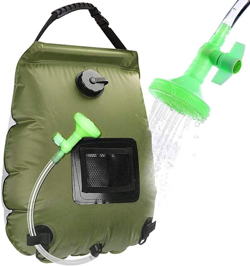 Преносим соларен душ, идеален за излети под палатка и къмпинг. Благодарение на използването на слънчевите лъчи, водата се нагрява до приблизително. 50 градуса! Лесен за използване, има здрава дръжка, която позволява да закачите душа навсякъде! Тръбата завършва с цедка! В комплекта: - каишка за окачване - тръба за укрепване на държача на торбата - маркуч с мрежест край - вентил за регулиране на водния поток - джоб за миещи принадлежности Характеристики: - Компактен размер - Вграден много практичен държач - Идеален за летни излети - Ширина след разгъване: прибл. 46 см - Дължина след разгъване: ок. 50 см - Капацитет 20 л - Термометър Продуктът е опакован в допълнителна фолио опаковка - готов за изпращане.
