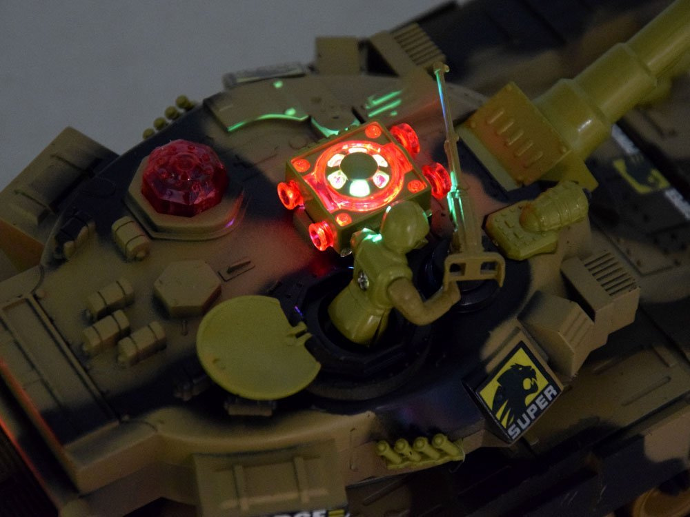 След точен изстрел се чува звукът на поразената цел и една от светлините, разположени на задната страна на поразения резервоар, угасва. Когато се стреля, освен звука от изстрела, целият танк се разклаща с много реалистичен откат като на истинско бойно поле. След като врагът бъде улучен три пъти, резервоарът му ще бъде обездвижен за известно време. Това означава, че сте загубили битката. Резервоарът се обездвижва за около 30 секунди. След това битката може да започне отначало. Както подобава на истински резервоар, задвижван с батерии, той е оборудван с гъсенично шаси върху меки гумени релси, които осигуряват добро сцепление.