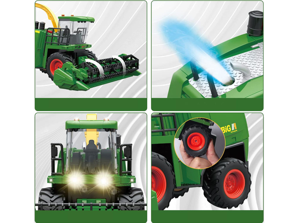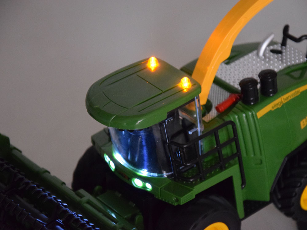 След стартиране на комбайна се чува звукът на стартиране и двигателят работи на бавна предавка. При движение напред се чува работа на двигателя и светят предните светлини и покривните сигнални светлини. При промяна на посоката на движение назад се чува звук за заден ход и светлините започват да мигат. Светлинните и звуковите ефекти могат да бъдат изключени с помощта на съответния бутон на дистанционното управление.