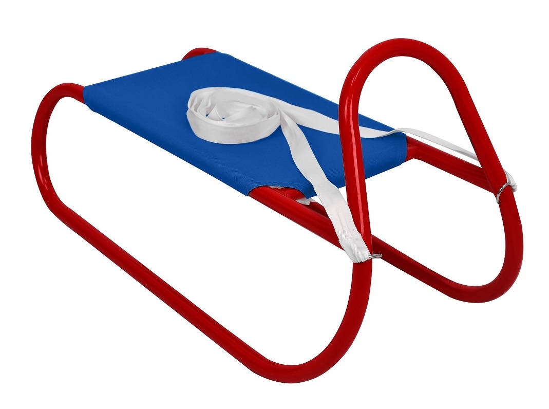 Метална детска шейна в синьо-червен цвят.