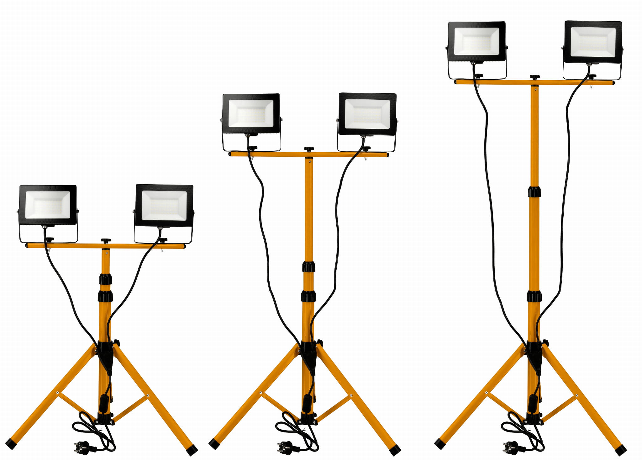 Стативът, който е част от комплекта, позволява лесно поставяне на прожекторите навсякъде, което е много удобно, особено при строителни, ремонтни или градински работи. Превключвателят позволява лесно включване и изключване на прожекторите, без да е необходимо да се изваждат от контакта.