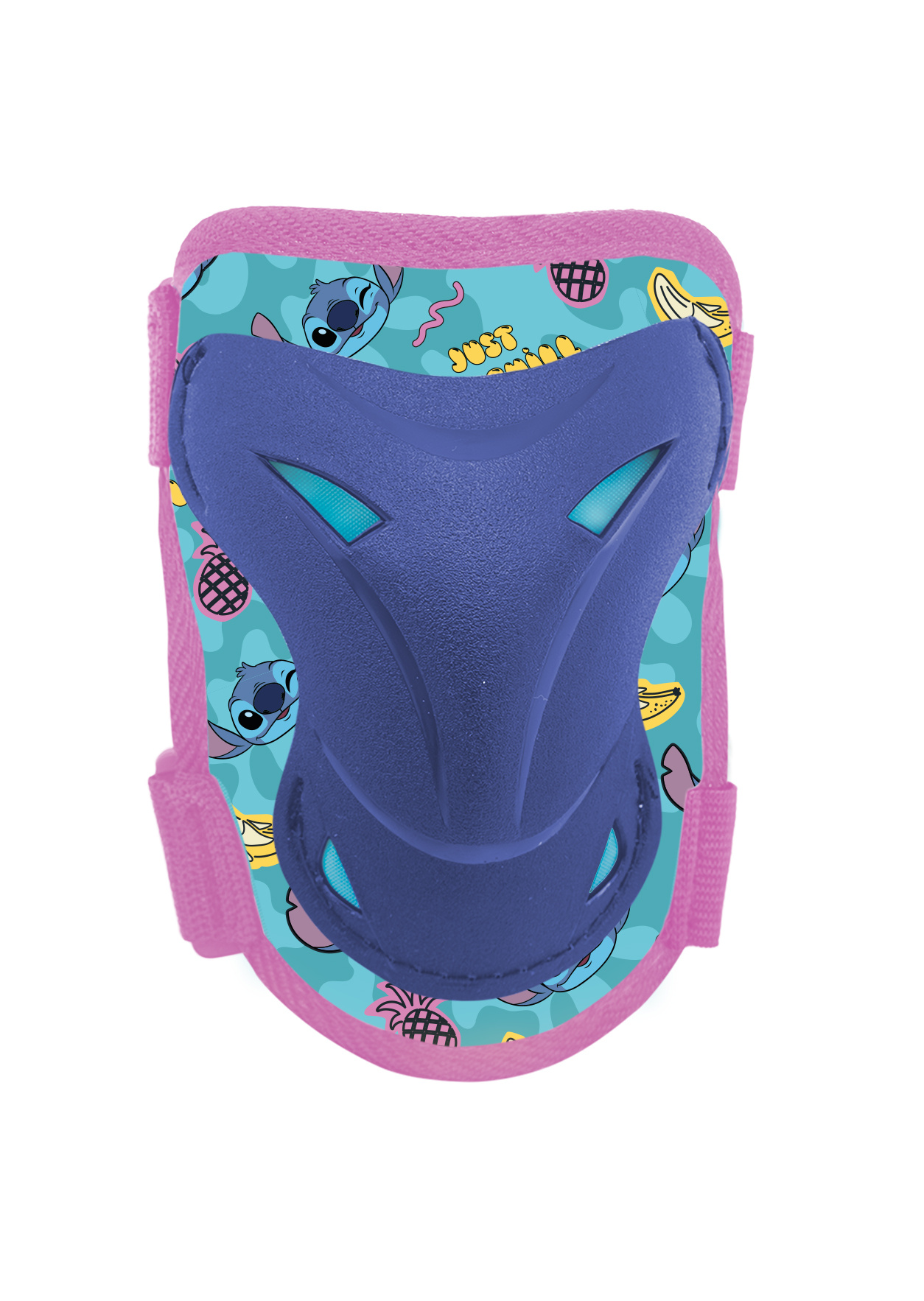 Анатомично оформените протектори са предназначени за деца при използване на кънки, ролкови кънки, скейтбордове, тротинетки и др. Изработено от издръжливи материали, украсено с фигурки на Стич. Защитното оборудване е проектирано така, че да намали риска от нараняване при падане. Продуктът е в съответствие със стандарта EN14120:2003+A1:2007.