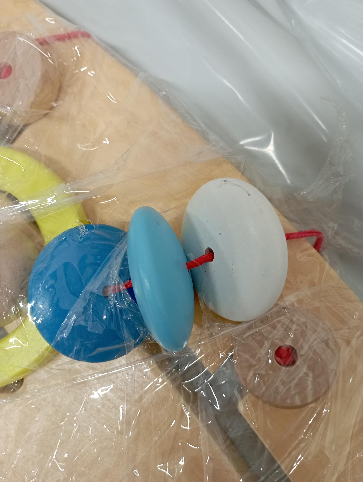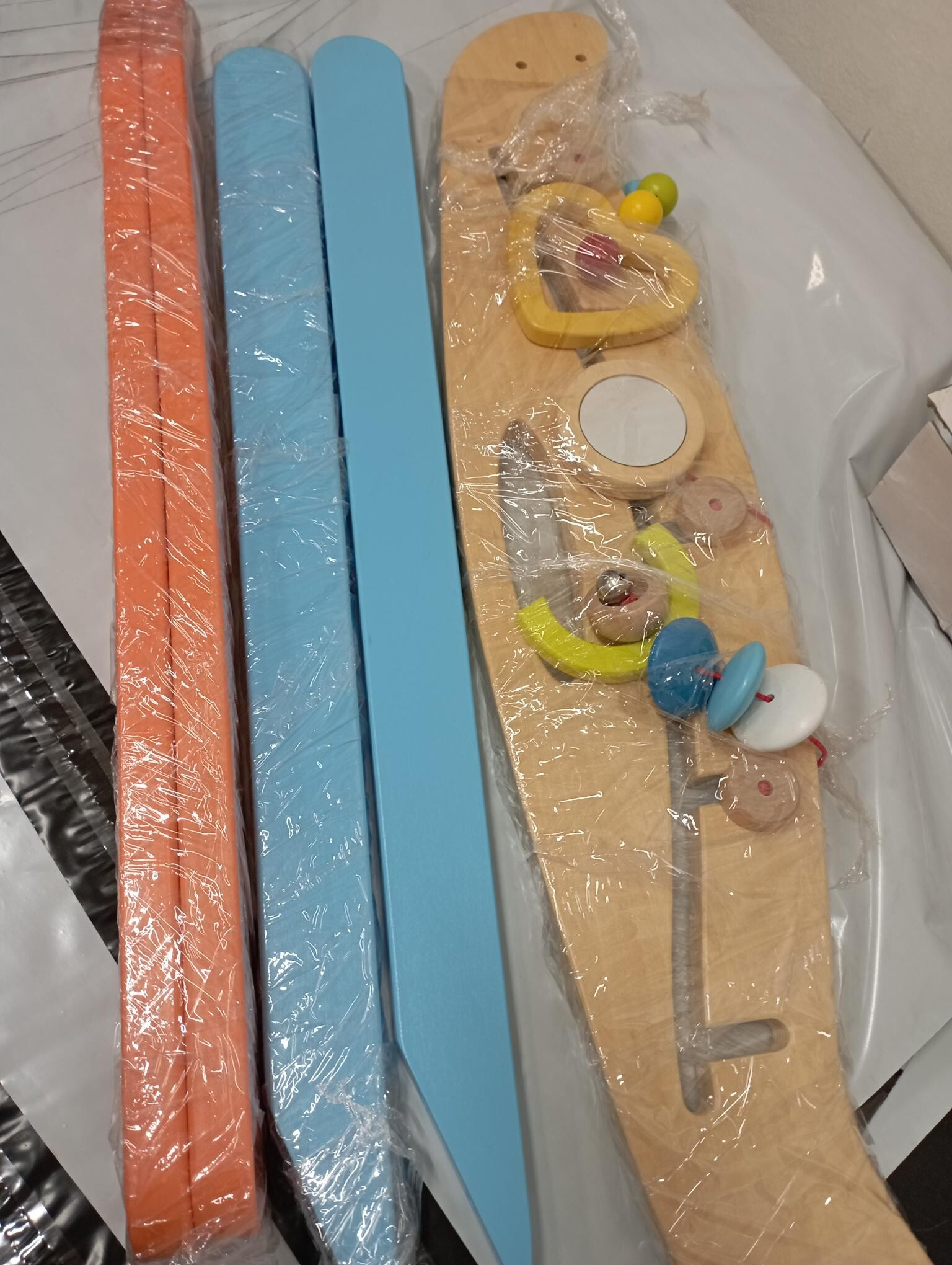Благодарение на тази дървена играчка, най-малките деца могат да тренират своите мускули. Фигурки за докосване - които включват звънец, огледало или цветни дървени топки, ще предоставят първите опити в координацията на ръцете и очите. Лостът помага за разпознаването на цветовете, събужда любопитството у децата и стимулира сетивата. Можете да променяте позицията на трите висящи обекта. Благодарение на интегрираната дръжка се пренася лесно. Продуктът изисква сглобяване, доставя се с илюстрирано ръководство за сглобяване.Основни характеристики: мултисензорна играчка, стимулира сетиватапъстър дизайнтренира координацията ръка-оковдъхновява за креативна игра