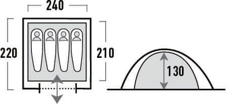 Еднокамерната палатка Texel II за 4 души съдържа водоустойчив слой, който може да издържи на проливни дъждове или сутрешна роса.