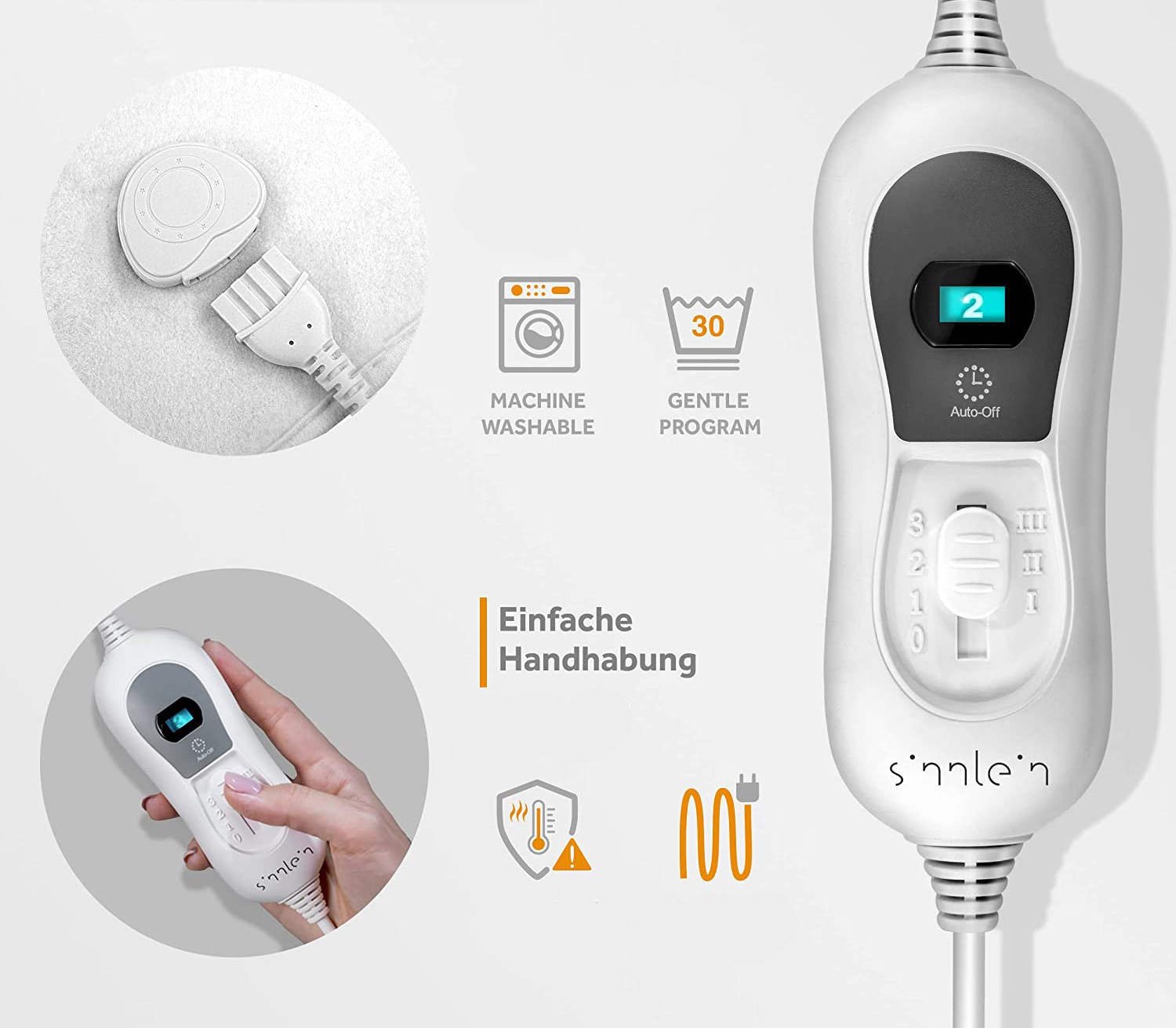 Електрическата нагревателна подложка има две нагревателни зони с мощност 60 W, всяка от които е снабдена с отделен регулатор на температурата. Това позволява на вас и партньора ви да затоплите леглото си до желаната температура за кратко време. Изберете една от трите различни температурни настройки, за да ви е удобно, без да притеснявате другия човек.