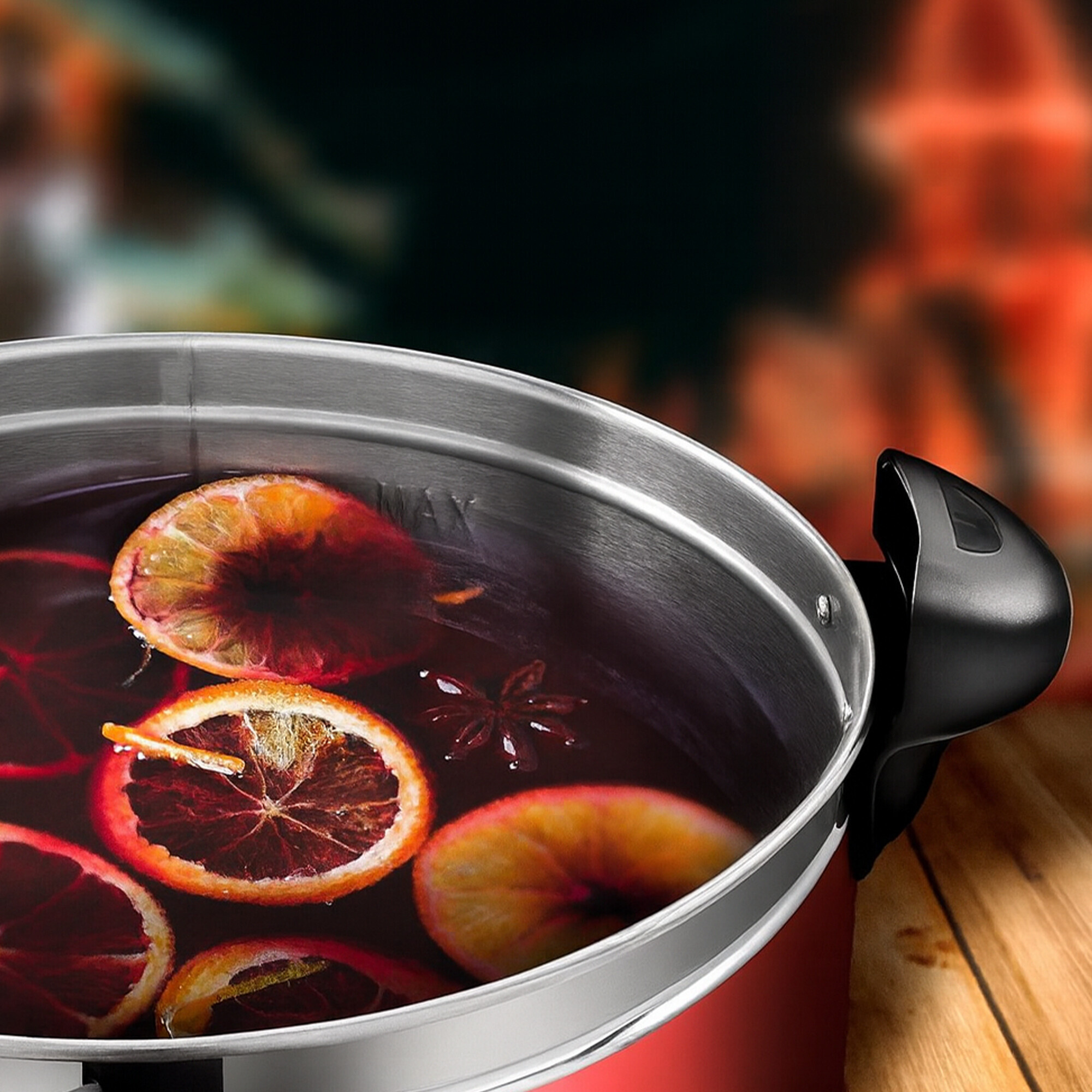 Избраната температура може да се регулира с удобния въртящ се регулатор между 30 и 110 °C в зависимост от това дали искате да поддържате течността в съда топла или да я доведете до кипене. След като устройството загрее, индикаторът до контролера светва.