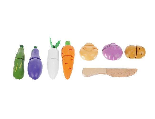 Изключително "вкусна" и цветна колекция от имитации на зеленчуци е прецизно изработена и нейните живи и сочни цветове влияят на естетическата стойност, привличат вниманието на детето и го насърчават към игра.