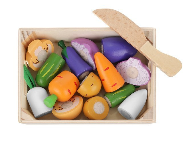 Комплект цветни зеленчуци в кутия е чудесно допълнение за забавление на малките готвачи, които обичат да играят у дома, да пазаруват или да готвят. Децата обичат да наблюдават възрастните и съставът им го позволява. Ще ви позволи да играете роли още от ранна възраст и ще изпълнява възпитателна функция.