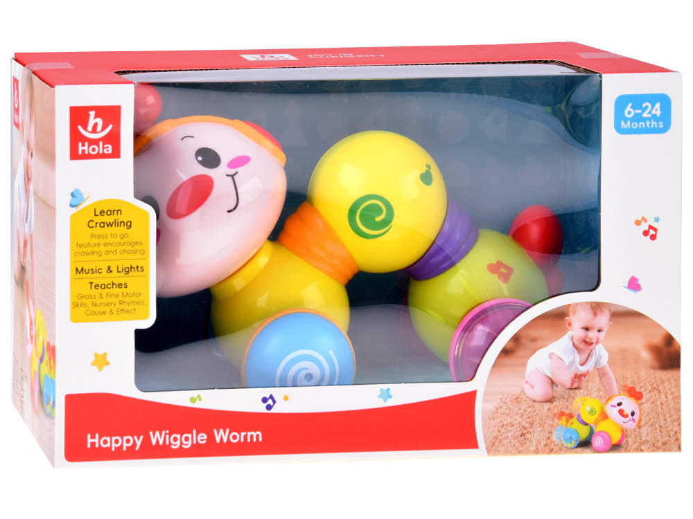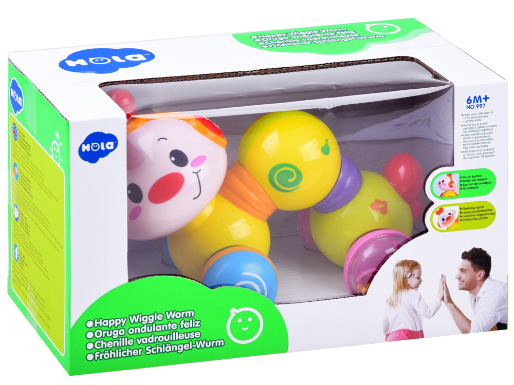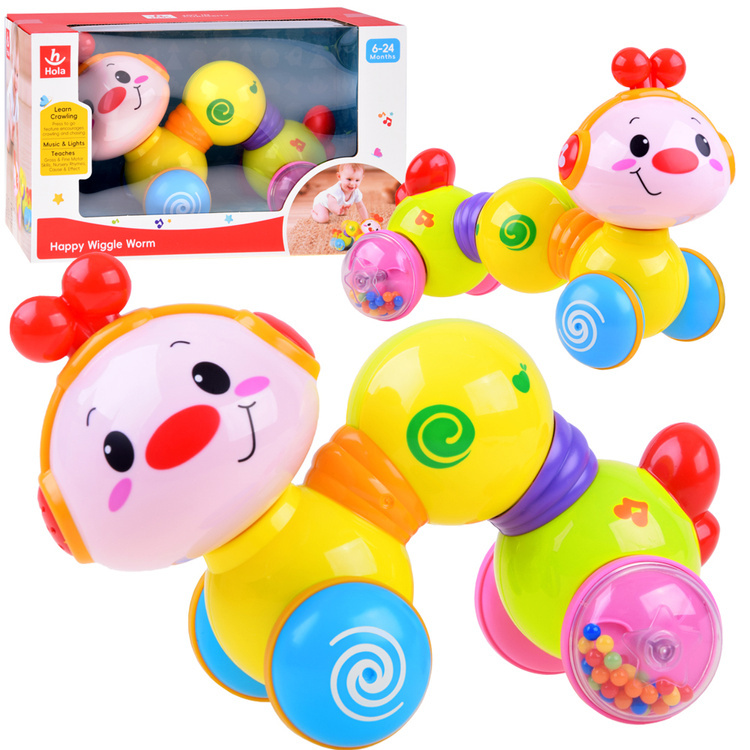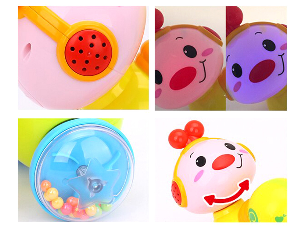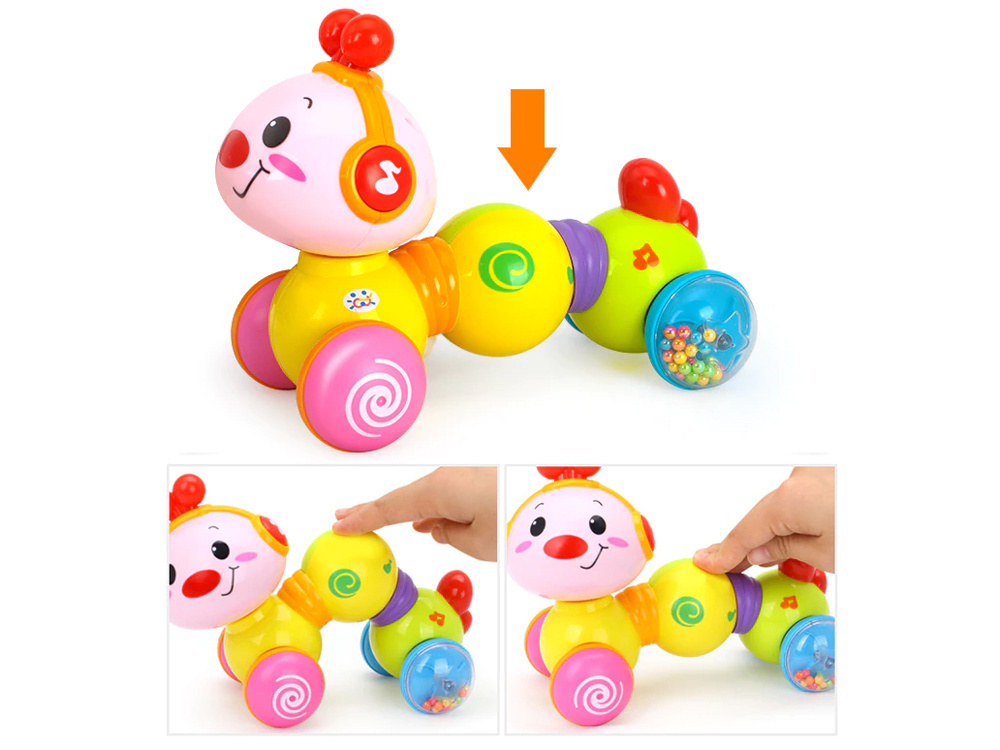 Главата на играчката свети и променя цветовете си, когато се възпроизвежда музика. Главата на гъсеницата е подвижна и може да се върти наляво по посока на часовниковата стрелка.