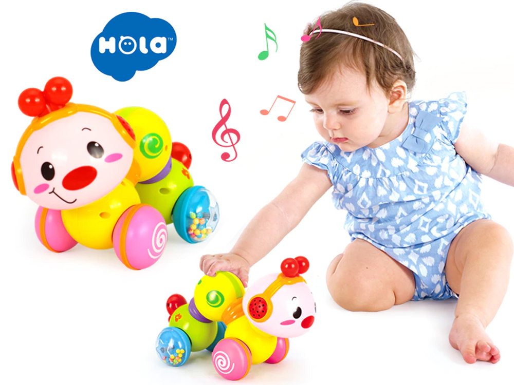Вълнуващите действия и забавните звуци насърчават детето да следва играчката и да се катери все по-смело.