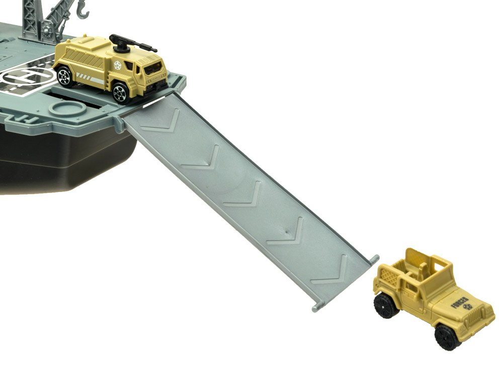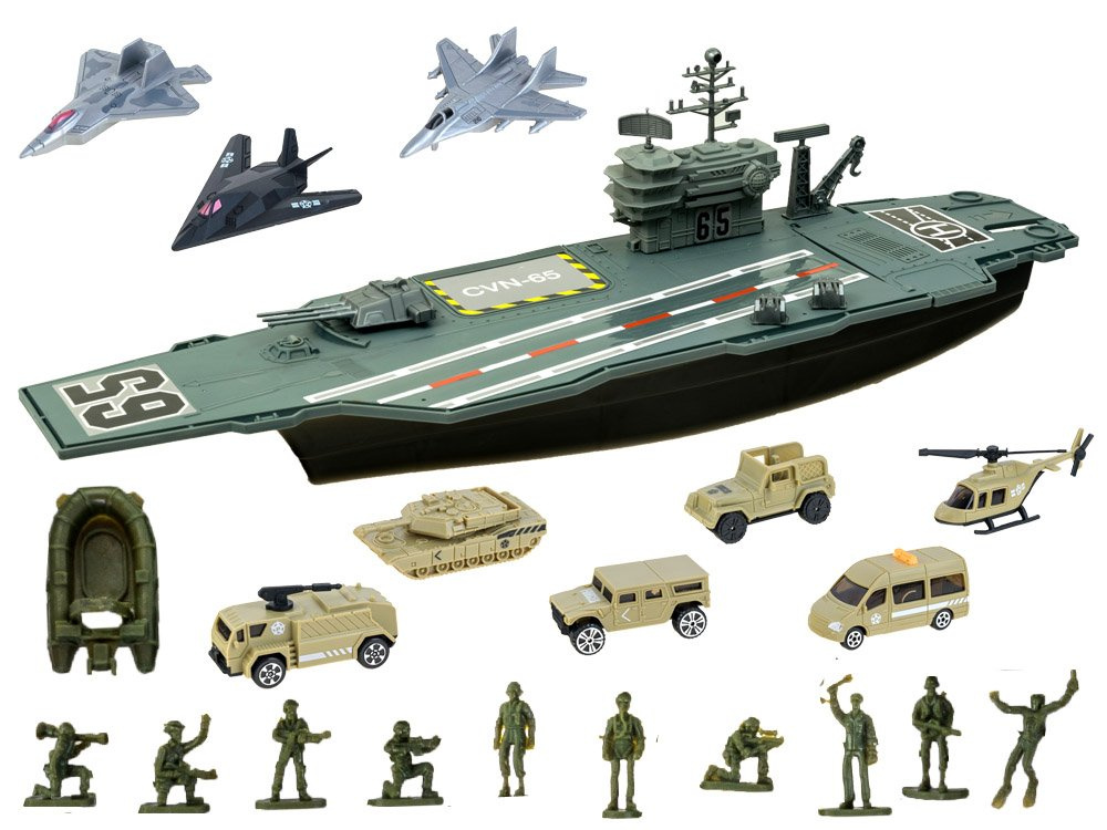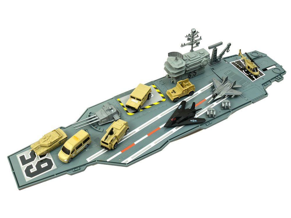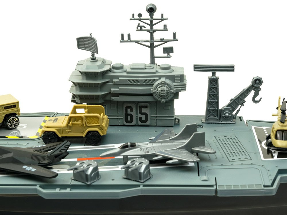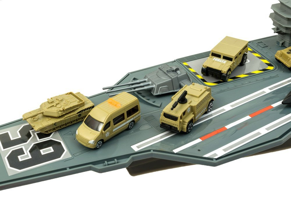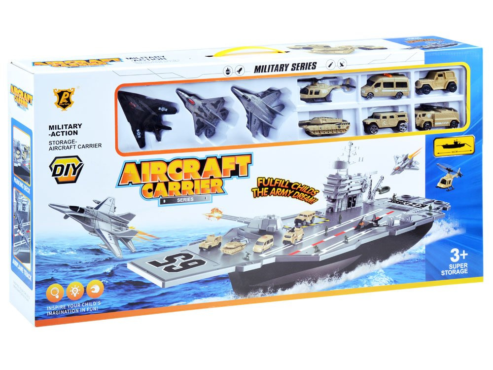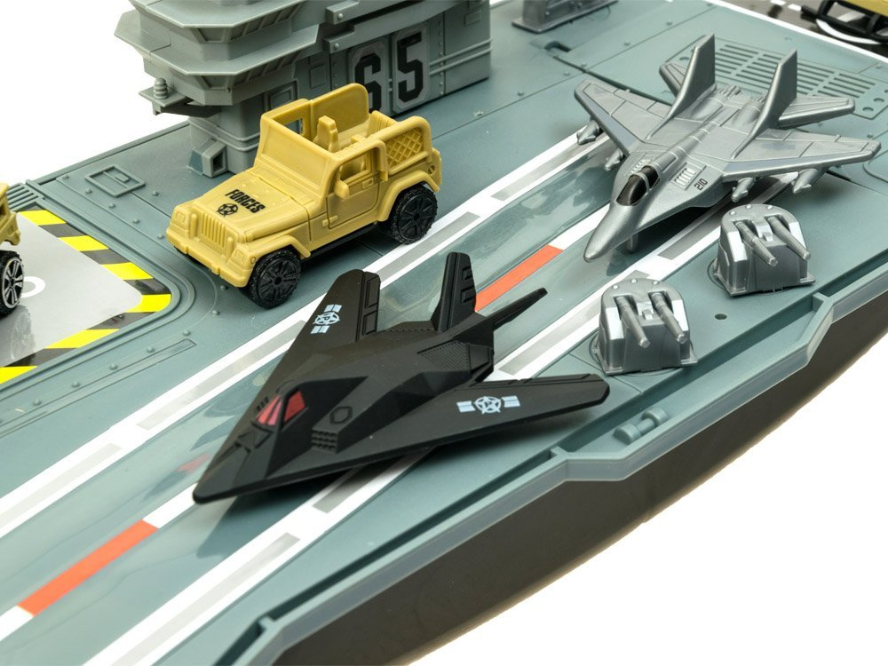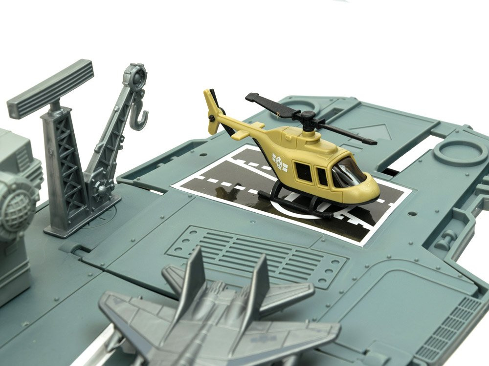 Огромният самолетоносач е истинско удоволствие за ценителите на военните технологии. Самолетоносачът, заедно с личния състав от военни самолети и военни превозни средства, със сигурност ще зарадва всеки малък, а вероятно и голям почитател на военната техника. Самолетоносачът, както и изтребителите и военните превозни средства, е изработен от пластмаса, много естетичен и прецизен. Отвътре има отделение за съхранение на неизползвани аксесоари.