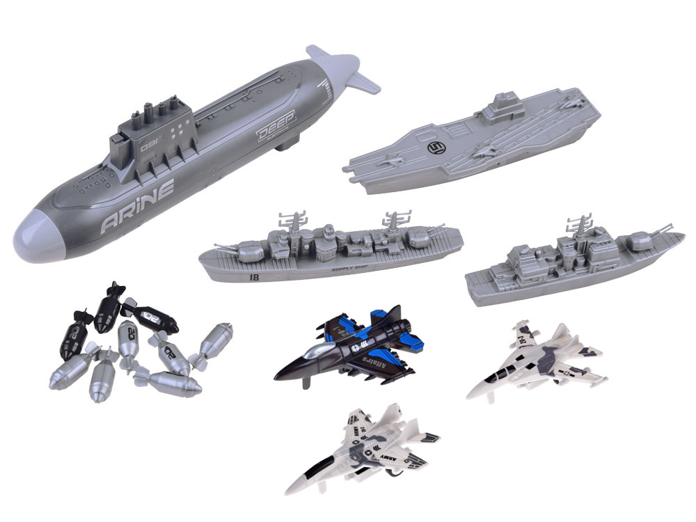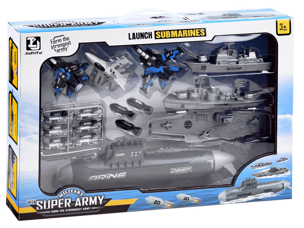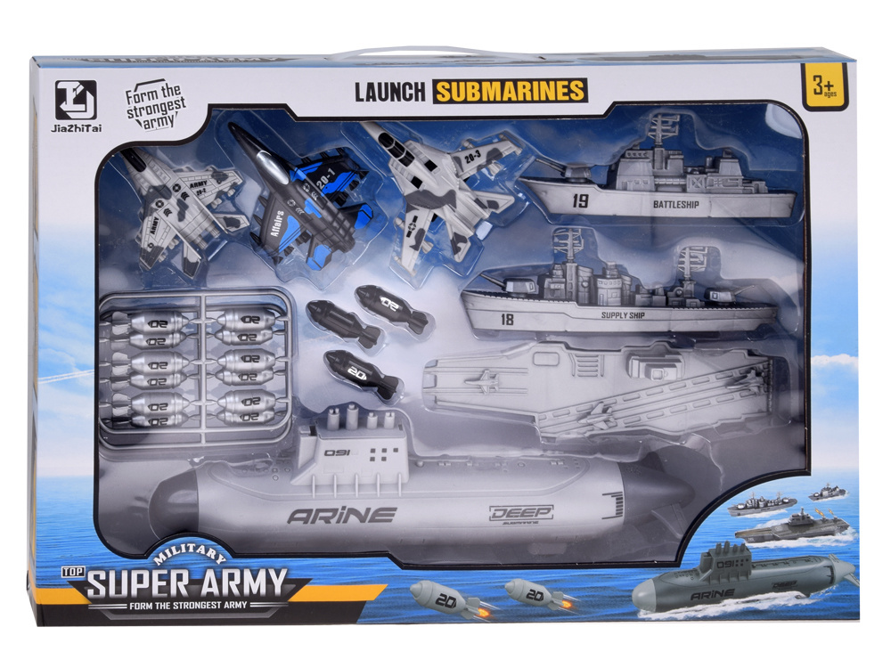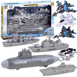 Комплектът от самолети, военни кораби и подводница, който малкият войник притежава, е необходимо оборудване за операции на бойното поле. Малкият стратег ще разполага с морски флот и три изтребителни самолета, които ще охраняват района от въздуха. Комплектът е изцяло изработен от пластмаса в съответните цветове и графика. Освен това подводницата има задвижване на задните колела, така че играта може да бъде по-реалистична.