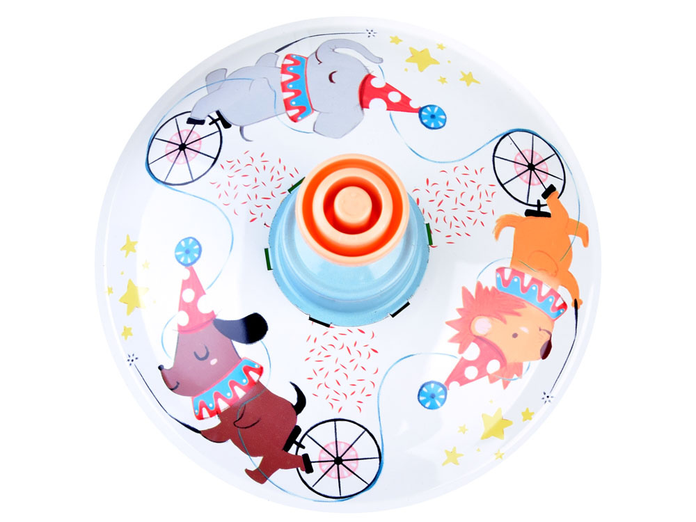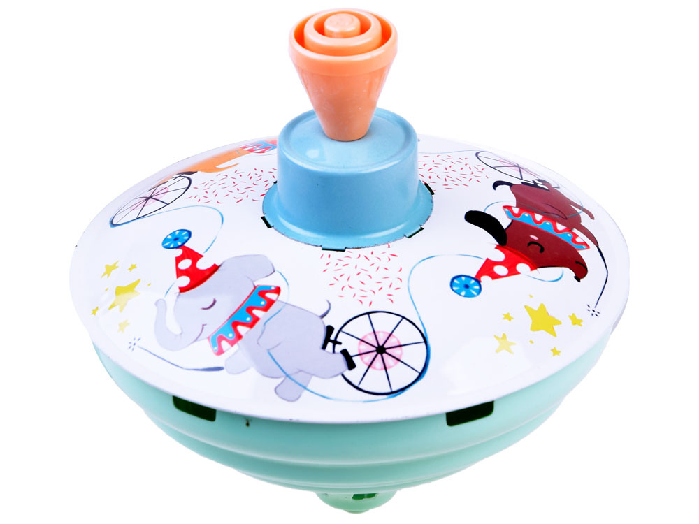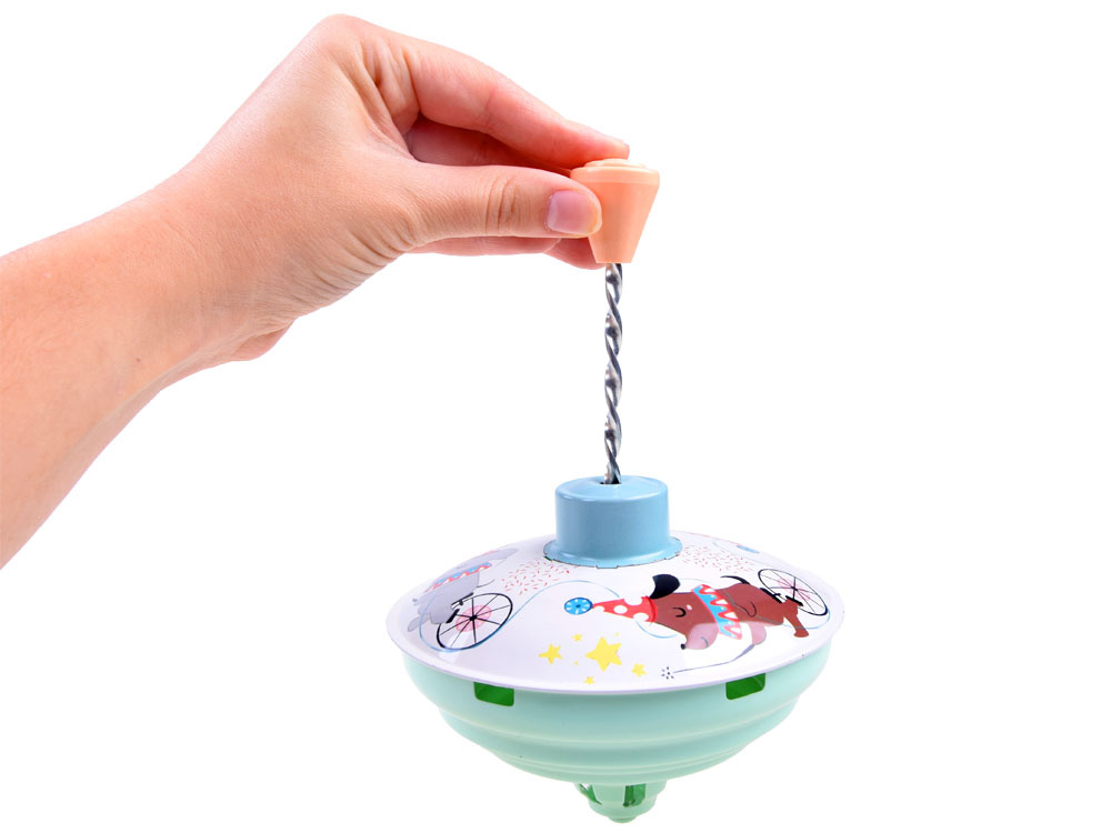 Традиционният въртящ се връх е вечна играчка, с която са си играли нашите родители, ние, а сега и по-младото поколение. Металната патица се отличава с приятните си пастелни цветове и сладки графики на животни. Играчката е много лесна за управление, просто натиснете буталото, за да накарате патицата да се завърти около оста си. Въртенето е придружено от характерен звук, който привлича вниманието на детето.