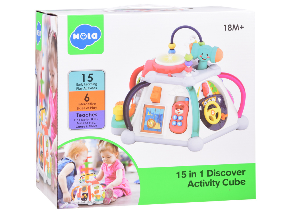 Популярният интерактивен куб Multicube на добре познатата марка Hola в нова, освежена цветова гама. Кубчето има много функции, които със сигурност ще завладеят всяко малко дете, и позволява часове наред да се забавлявате и обучавате в едно. Всички части на тази играчка са проектирани така, че да са подходящи за малки детски ръце. Звуците, които се възпроизвеждат, стимулират сетивата на детето и го насърчават да открие източника на звуците. Стискането, ударите и плъзгащите се елементи ще помогнат за развитието на ръчните умения.