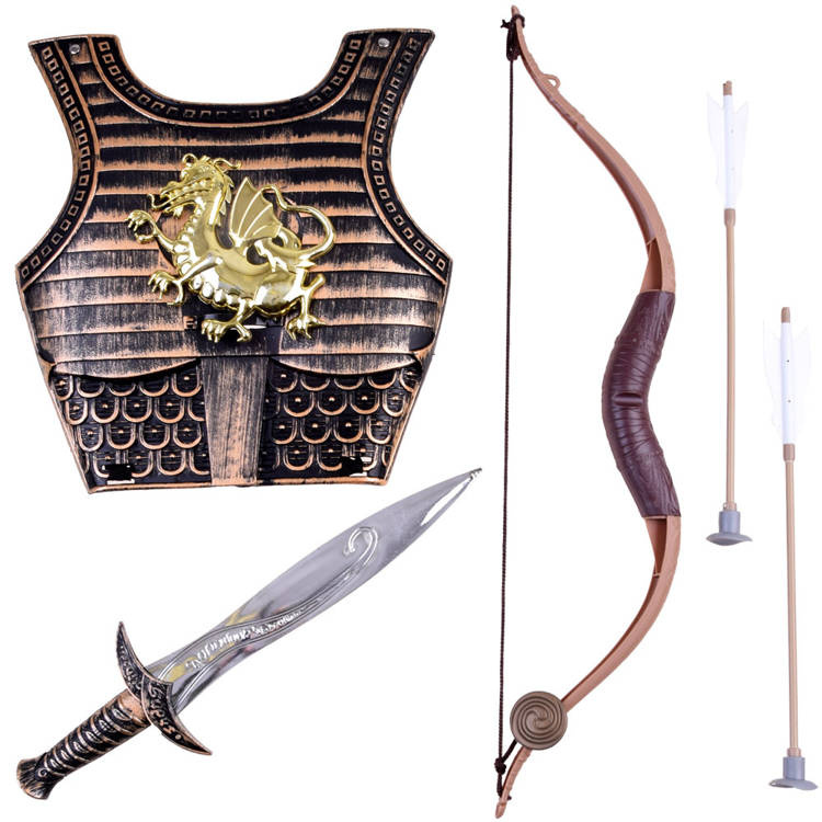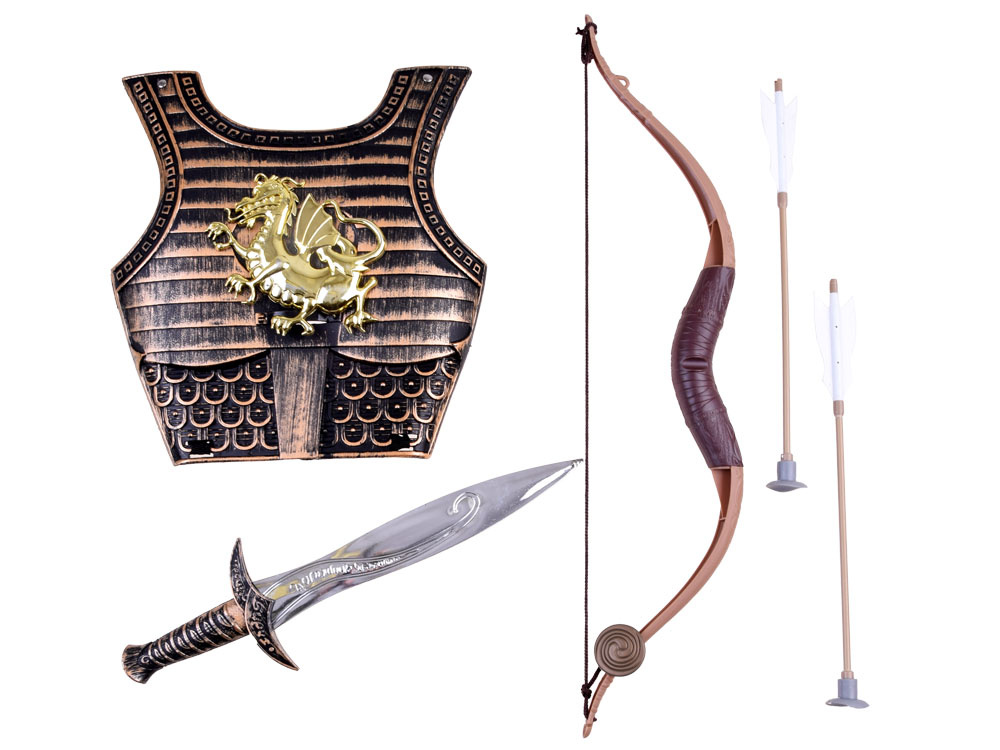 Доспехите с меч, лък и стрели са комплект за млад рицар, който е чудесен за игра и маскараден бал. Почти всяко момче обича да си играе на рицари, воини, войници и т.н. Имам възможността да ви предложа невероятен комплект за малък стрелец. Този реалистичен комплект ще зарадва много рицари и е идеален за игра и маскараден бал.