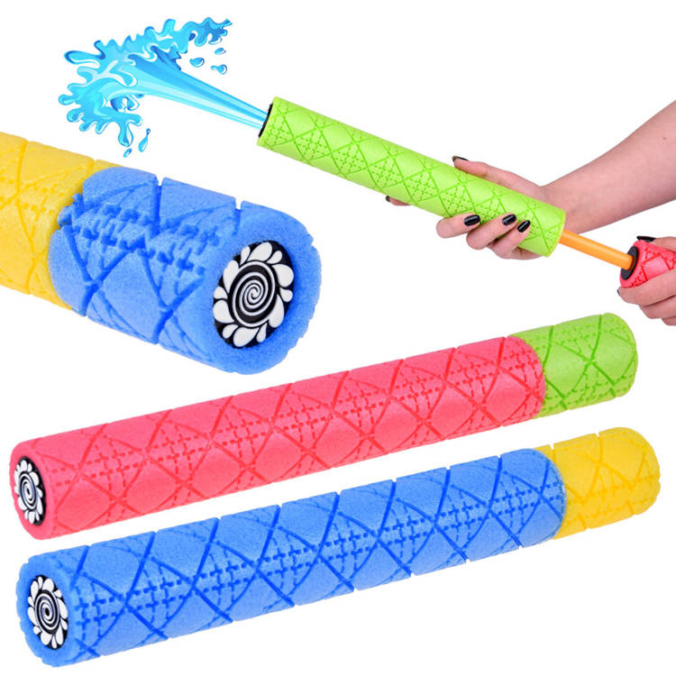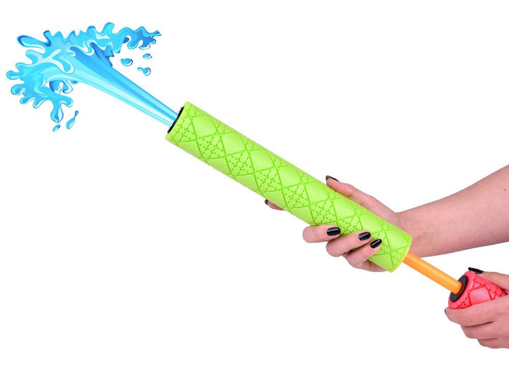 Пяна воден пистолет в ярки цветове със сигурност ще стане спътник в много ваканционни игри. Пистолетът работи на принципа на спринцовка - достатъчно е да го потопите във вода и да го напълните. Пластмасовото оръдие е оборудвано с мека пяна, така че играта с него ще бъде безопасна.