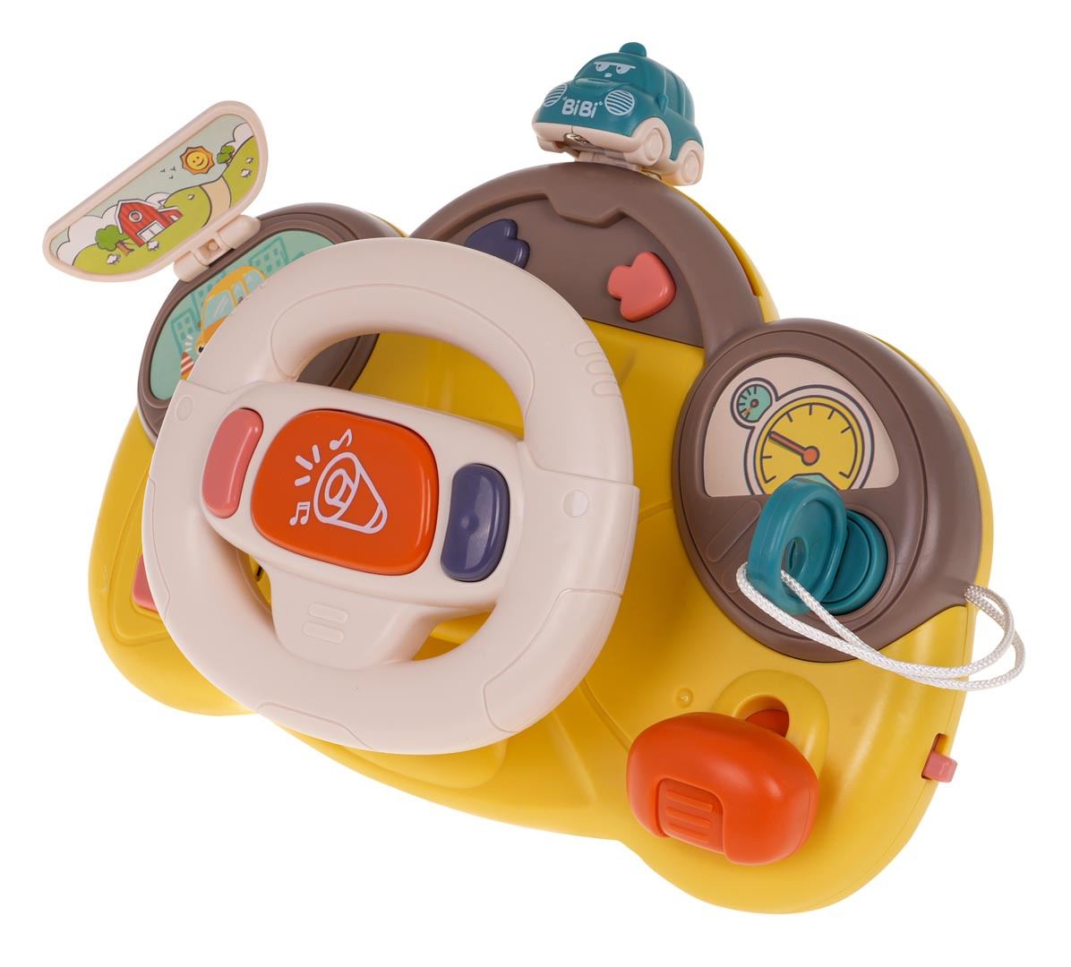 Интерактивен волан за деца от първите дни на живота. Играчката е изработена от висококачествена пластмаса в ярки цветове, които привличат вниманието на детето. Тя е безопасна за малки деца, няма остри ръбове. Играчката има велкро ленти, които могат да се прикрепят към количка, креватче, столче за кола или столче за хранене. Играчката се захранва с батерии тип 3 x AA 1,5 V (не са включени в комплекта).