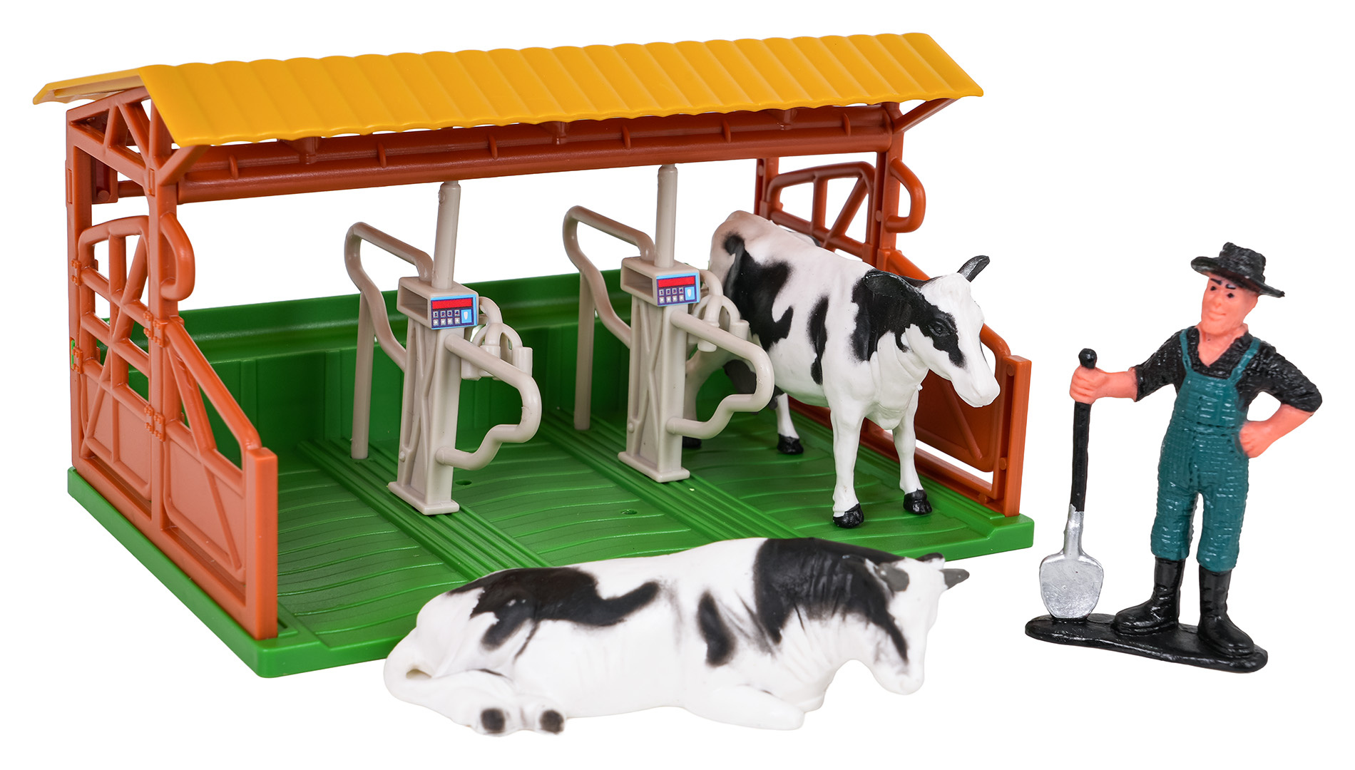 Комплект ферма с интерактивен трактор, цистерна, ограда и фигурки за деца над три години. Комплектът е изработен от най-качествена пластмаса в ярки цветове. Комплектът съдържа ограда за добитък, 2 кравички, фигурка на фермер, дръвче, цистерна и интерактивен трактор със звукови и светлинни ефекти. Тракторът издава звуци на движение, заден ход, клаксон (панел с бутони на покрива). Тракторчето се захранва с батерии тип 3 x AG13 1,5 V (в комплекта).