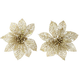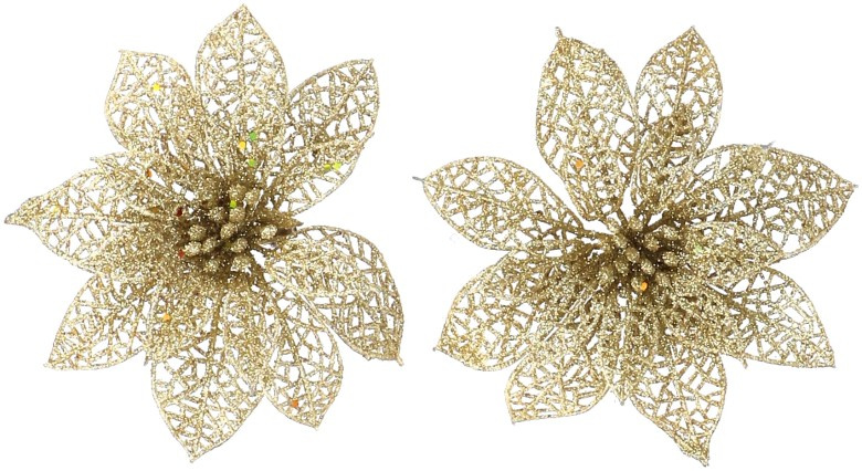Златни блестящи цветя на клип за коледно дърво